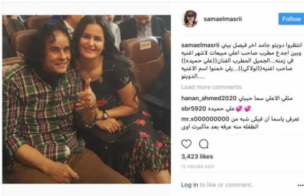 وقالت سما المصري :”انتظروا دويتو جامد اخر بيني وبين اجدع مطرب صاحب اعلي مبيعات لاشهر اغنيه في زمنه…الجميل المطرب الفنان ((علي حميده)) صاحب اغنيه((لولاكي))… خمنوا اسم الاغنيه الدويتو”.
