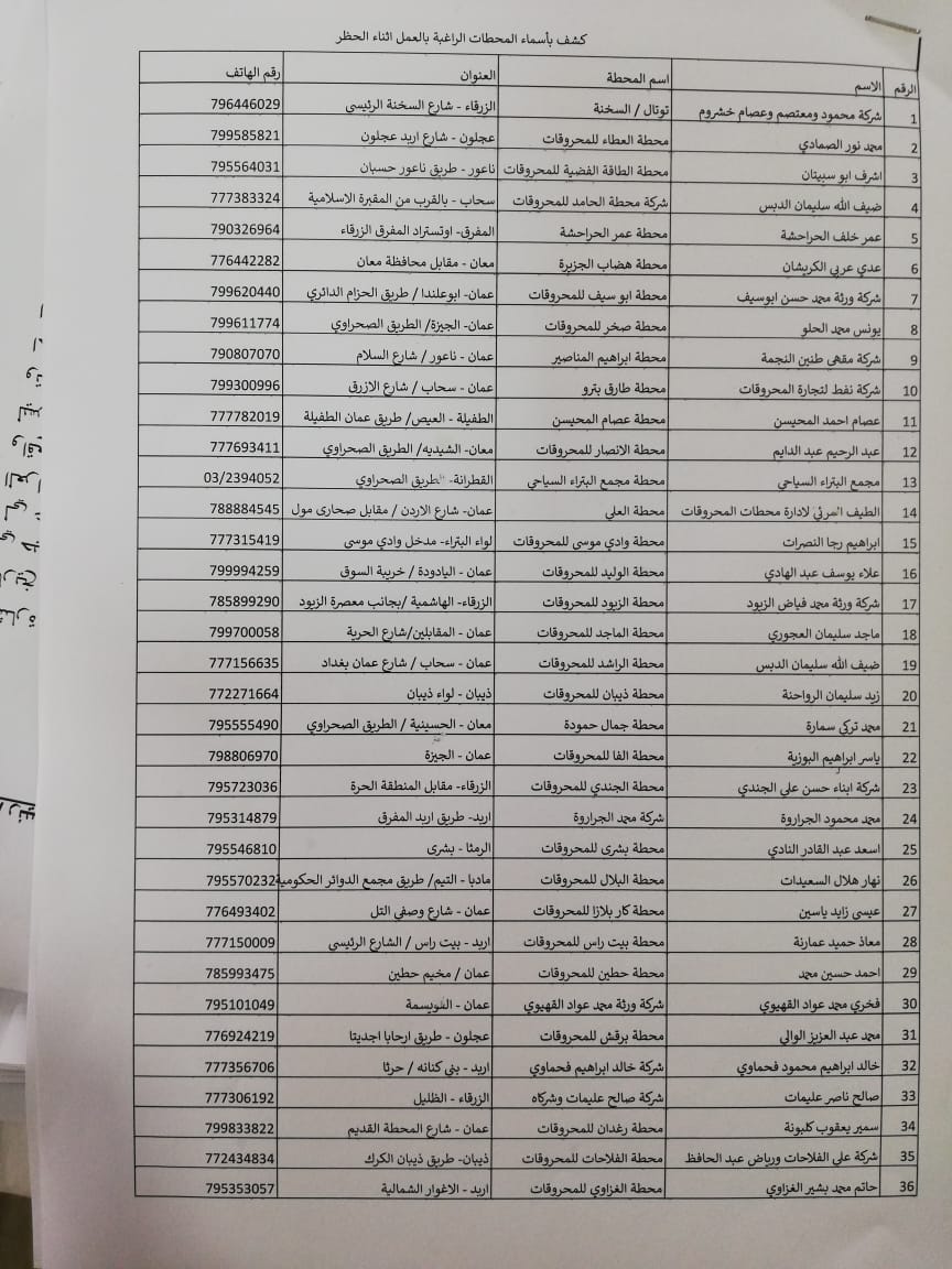 أسماء محطات محروقات تعمل فترة الحظر الشامل: