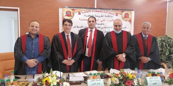 الأول نيوز – حصل الطالب علي الرحامنة على درجة الدكتوراة في جامعه مؤته برسالته المعنونة ” الدور السياسي والدبلوماسي لعُمان في الشرق الأوسط في عهد السلطان قابوس بن سعيد 1970-2020″