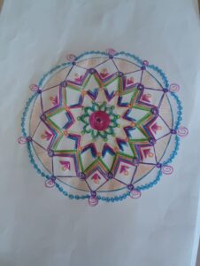 فن الماندالا ليس ترفا… وليس غاية بحد ذاته إنما هو يساعدنا على التخلص من الأشياء السلبية حتى نكون جاهزين للحياة بكل مسوؤلياتها المادية والمعنوية فمن أهم الصفات التي جذبتني إليه، هو أنه يخرجك من حالة التوتر والقلق إلى حالة من الهدوء وصفاء الروح والفرح…