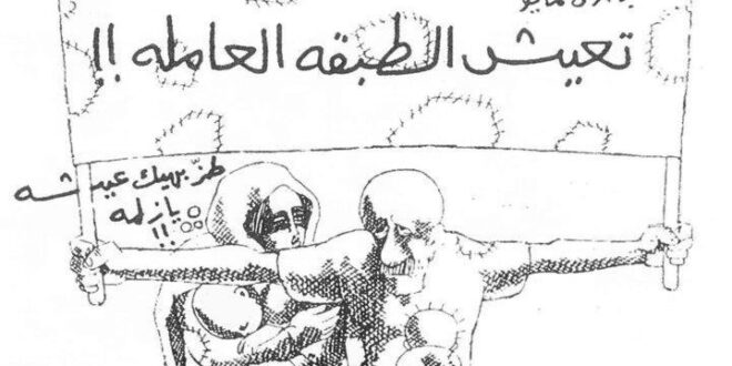 في منتصف السبعينيات، جسد فنان الكاريكاتور الفلسطيني العالمي ناجي العلي صيغة حقيقية لعيد العمال العالمي، عندما رسم عاملا يحمل لافتة قماشها مرقع كتب عليها “تعيش الطبقة العاملة” إلى جانبه زوجته التي تحتضن ابنها الصغير، وبكل قهر الدنيا تقول له: “طز بهيك عيشة يا زلمة..”.
