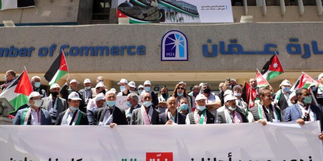 ورفع المشاركون بالاحتفالية، التي اقيمت امام مقر غرفة تجارة عمان، العلمين الاردني والفلسطيني، وشعارات تؤكد بان الوصاية الهاشمية على المقدسات “خط احمر”، وان الاردن هو الشريان والرئة للشعب الفلسطيني.