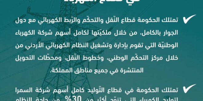 الأول نيوز – أفصحت الحكومة في بيانات منشورة عبر منصة حقك تعرف عن ملكياتها في قطاع الكهرباء بالمملكة.