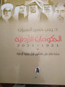 الأول نيوز – صدر مؤخرا كتاب الحكومات الاردنية للمؤلف الدكتور رجب حسن النعيرات ويتصف هذا الكتاب بالشمولية والتحليل العلمي والموضوعي وبدقة نقل المعلومة من مصادرها الموثقة اعتبارا من تاريخ تأسيس امارة شرقي الاردن وحتى تاريخ حكومة الدكتور بشر الخصاونة .
