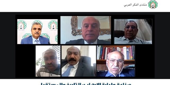 الأول نيوز – عقد منتدى الفكر العربي، يوم الأربعاء 13/10/2021 لقاءً حوارياً عبر تقنية الاتصال المرئي، حاضر فيه أستاذ الدراسات السياسية والاستراتيجية في جامعة نايف العربية للعلوم الأمنية في الرياض سابقاً د.عصام ملكاوي حول “صناعة وإدارة الإرهاب: التاريخ والمستقبل”، وشارك بالمداخلات في هذا اللقاء الذي أداره الوزير الأسبق والأمين العام للمنتدى د.محمد أبو حمَّور، وزير التربية والتعليم الأسبق وأستاذ المناهج وطرق التدريس وتكنولوجيا التعليم في جامعة قناة السويس في مصر د. إبراهيم أحمد غنيم، وعضو الهيئة العلمية وعميد كلية علوم الجريمة في جامعة نايف العربية للعلوم الأمنية في السعودية د.خالد إبراهيم الكردي، وأستاذ منهجيات البحث والإحصاء والقياس والتقويم وتحليل النظم وحزم البرامج الإحصائية للحاسوب في جامعة قناة السويس بمصر د. عبد العاطي الصياد، وأستاذ علوم ودراسات استشراف المستقبل في جامعة السودان للعلوم والتكنولوجيا د.مالك المهدي، وحضر اللقاء أستاذ العلوم الاجتماعية بجامعة طرابلس في ليبيا د. نصر الدين بوغمجة.