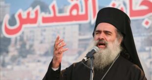 الاول نيوز – أكد رئيس أساقفة سبسطية الروم الأرثوذكس في القدس المحتلة المطران عطا الله حنا، السبت، الوصاية الهاشمية على المقدسات الإسلامية والمسيحية في مدينة القدس. وأضاف حنا عقب التطورات التي تشهدها مدينة القدس:”رسالتنا كمقدسيين في ظل هذه الانتهاكات وهذه الممارسات الاحتلالية العنصرية الغاشمة هي أننا سنبقى مرابطين متمسكين بانتمائنا …