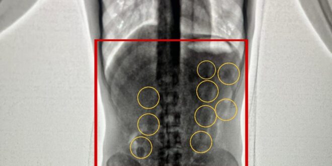 وبعد تفتيشهما والكشف عليهما بواسطة الاجهزة اللازمة اكتُشف وجود كميات من المواد المخدرة داخل أحشائهما ، وجرى إخراج هذه المواد بالطرق الطبية، وقُدرت ب 2 كغم من مادة الكوكايين المخدرة .