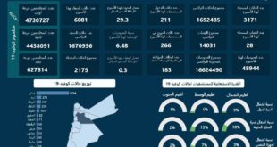 أكمل القراءة »الاردن : 28 وفاة و3171 إصابة كورونا بأسبوع