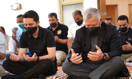 الأول نيوز- أدى الملك عبدالله الثاني والأمير الحسين بن عبدالله الثاني، ولي العهد، صلاة الجمعة الأولى من شهر رمضان المبارك في مسجد الحرس الملكي بالعقبة.
