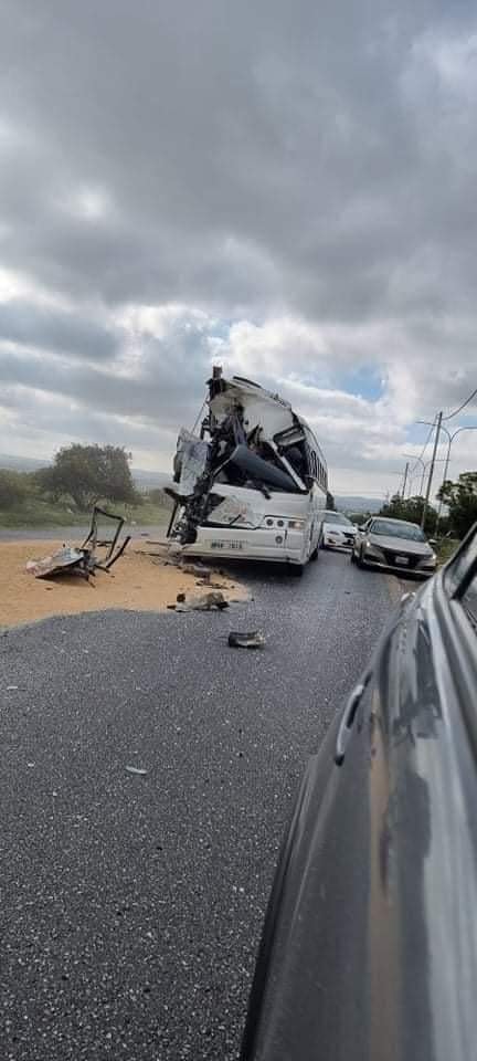الأول نيوز – ارتفع عدد اصابات حادث تصادم حافلة و شاحنة نقل (قلاب) ما بعد جسر النعيمة، وتحديدا على مثلث كتم باتجاه اربد ، الى 41 شخصا.