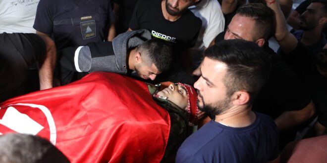 الأول نيوز – شارك المئات من أبناء الشعب الفلسطيني، في محافظة بيت لحم، اليوم الخميس، في تشييع الشهيد الرفيق أيمن محيسن “29 عاما”، والذي استشهد صباح اليوم برصاص قوات الاحتلال في مخيم الدهيشة.