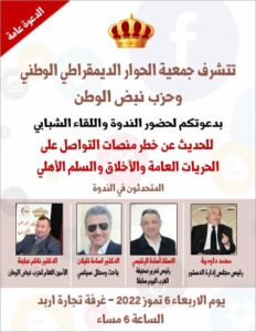 موضوع الندوة وعنوانها: “الحديث عن خطر منصات التواصل على الحريات العامة والأخلاق والسلم الأهلي”.