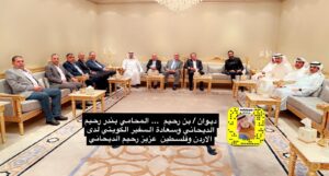 وأشار في اللقاء الذي ضم ايضا وجهاء وشيوخ عشيرته “الديحاني”، وغيرهم من النخب الكويتية، إن هناك مكانة للكويت في قلوب الاردنيين وهي ذات المكانة التي يسكنها الاردن في قلوب الكويتيين.