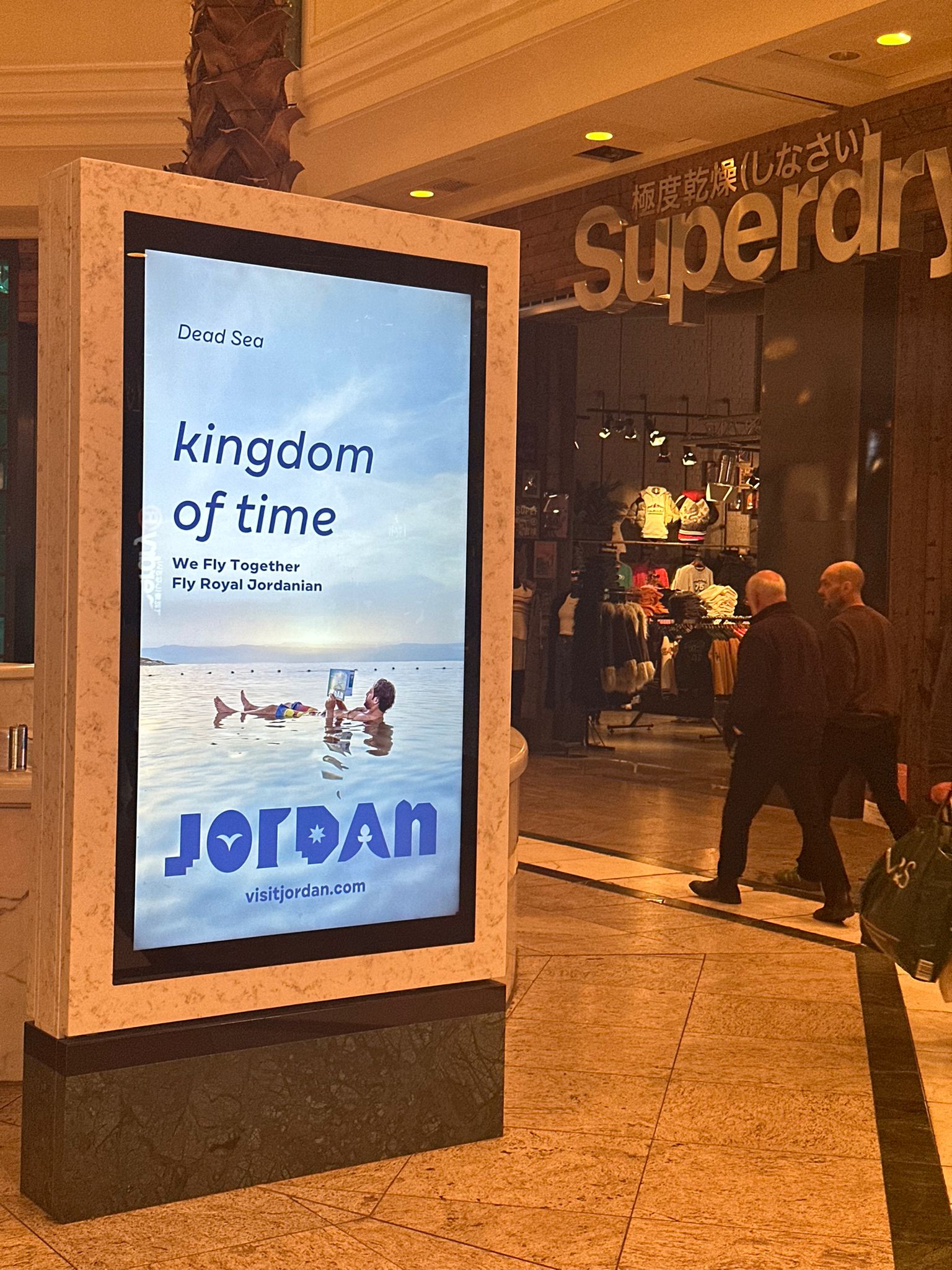 واضح عربيات ان الإعلانات ضمن هذه الدول تبرز دور الملكية للطيران كناقل رسمي كما تضمنت الإعلانات وجودها على وسائل النقل العام (باصات – تكاسي – قطارات) إضافة الى اللوحات الاعلانية في المولات و الشوارع و مواقف الباصات و محطات القطار و المترو كما تضمنت أيضا لوحات اعلانية كبيرة الحجم في اهم المواقع مثل الدومو في ميلان ايطاليا و بيكادلي في مانشستر بريطانيا والاعلان ضمن شاشات الكترونية في الشوارع العامة .