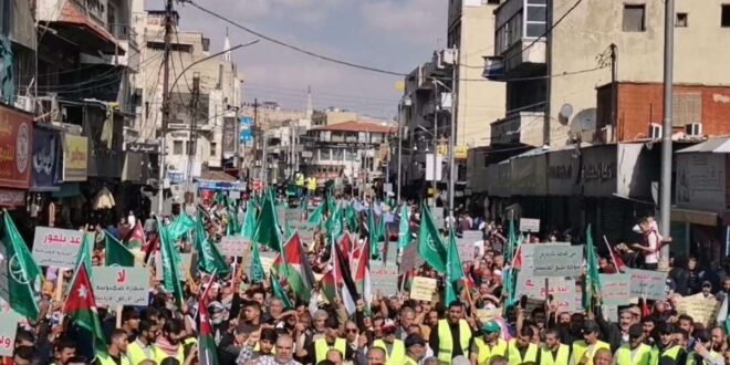 وطالب المشاركون الحكومة الأردنية بإلغاء معاهدة وادي عربة وطرد سفير الاحتلال الصهيوني واغلاق سفارة الكيان في عمان.