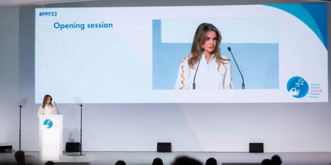 الأول نيوز – دعت جلالة الملكة رانيا العبدالله المجتمع الدولي للعمل المشترك من أجل نقلة نوعية في الاستجابة للأزمات العالمية، جاء ذلك في كلمتها خلال الدورة الخامسة لمنتدى باريس للسلام في فرنسا اليوم.