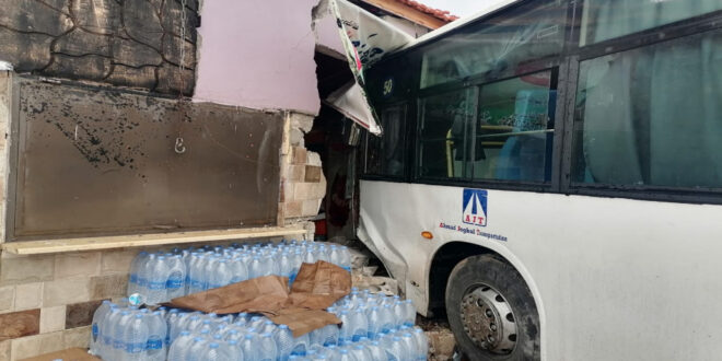 وأوضح الفاعور أن الباص اصطدم بمركبة ثم انحرف واصطدم بكشك لبيع القهوة.