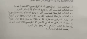 – السرفيس خط طويل أكثر من 130 كيلو متر 160 دينارا شهريا.