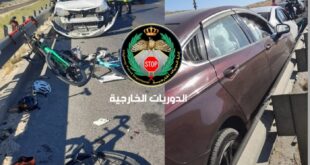 الأول نيوز – أصيب 5 اشخاص اثر حادث تصادم بين مركبتين وخمس دراجات هوائية ما بعد جسر الموقر باتجاه الزرقاء. وقالت الدوريات الخارجية ان فرقها صباح الجمعة تعاملت مع حادث تصادم بين مركبتين وخمس دراجات هوائية ما بعد جسر الموقر باتجاه الزرقاء ، نجم عن الحادث خمس اصابات تم اسعافهم …