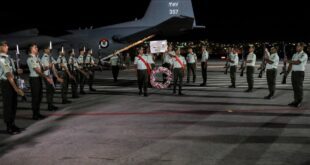 الأول نيوز – شيعت القيادة العامة للقوات المسلحة الأردنية – الجيش العربي، اليوم السبت، جثمان شهيد الواجب الرقيب/1 جميل محمود متروك السيايدة إلى مثواه الأخير، بعد الصلاة عليه في مسجد عثمان بن عفان، في منطقة الجدعا بمحافظة الكرك والذي استشهد أثناء قيامه بواجبه ضمن قوة الانتشار السريع الأردنية مالي/2. وجرى …