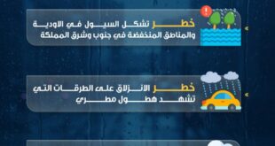 الأول نيوز – حذر المركز الوطني للأمن وإدارة الأزمات من الحالة الجوية المتوقعة خلال الأيام المقبلة. وحذر المركز، الإثنين، من خطر تشكل السيول في الأودية والمناطق المنخفضة في جنوب وشرق المملكة، كما حذر من خطر الانزلاق على الطرقات التي تشهد هطول مطري. وأكد المركز ضرورة الحذر من خطر تشكل الضباب …