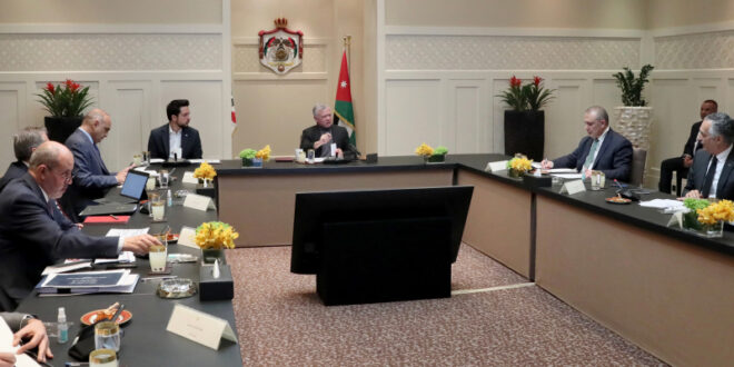 الأول نيوز – اطلع الملك عبدالله الثاني، اليوم الأربعاء، على برنامج الحكومة لتنفيذ رؤية التحديث الاقتصادي في قطاعات الصناعة والسياحة والعمل وفق الإطار الزمني المحدد، وذلك خلال اجتماع عقد في قصر الحسينية.