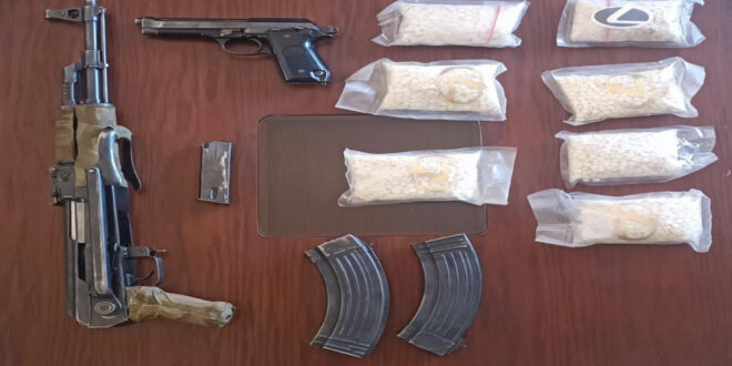 وأكّد الناطق الإعلامي أنّه وبعد كل تلك الجهود الاستخبارية التي قام بها فريق التحقيق تم تحديد مسار تحركه من منطقة الرويشد باتجاه محافطة المفرق، إذ جرت مداهمته وإلقاء القبض عليه وضُبِط بحوزته سلاحان ناريان و 10 آلاف حبة مخدرة وبوشرت التحقيقات معه.