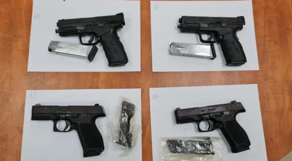 وأضاف أنه تم تسليم المضبوطين والمركبة التي تحتوي على 15 مسدسا للشرطة لاجراء التحقيق.