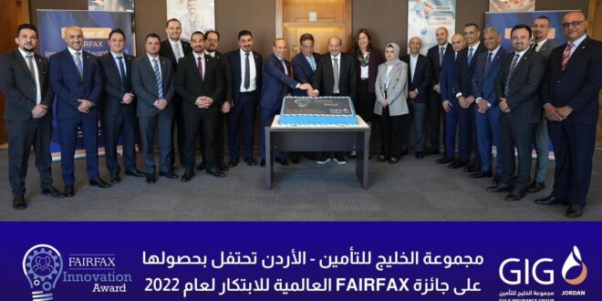 الأول نيوز – حصلت مجموعة الخليج للتأمين – الأردن على جائزة فيرفاكس للابتكار لعام2022 عن مشروعها”GIG-AutoParts” من بين 25 مشروع تقدمت للجائزة تمثل 12 شركة من مجموعة فيرفاكس حول العالم. وتعتبر GIG-Jordan أول شركة في الشرق الأوسط تحصل على هذه الجائزة بعد أن فازت بها كل من Odyssee Group للعام 2021، KI BRIT للعام 2020، Fairfirst للعام 2019، The Zenith للعام .2019 وقد تم الإعلان عن الجائزة في 20 أبريل 2023 خلال اجتماع الهيئة العامة لشركة فيرفاكس الذي أقيم في تورنتو- كندا.