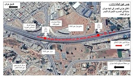 وقالت الوزارة في بيان صحفي صادر عن وحدة الإعلام والاتصال، اليوم الخميس، إنه سيتم اجراء تحويلات مرورية على الجسر في منطقة العمل بشكل جزئي، إذ سيتم اغلاق المسرب الايمن لتنفيذ اعمال الصيانة اللازمة ومن ثم الانتقال الى المسرب الاخر بحسب الاشارات الارشادية التي سيجري تركيبها.