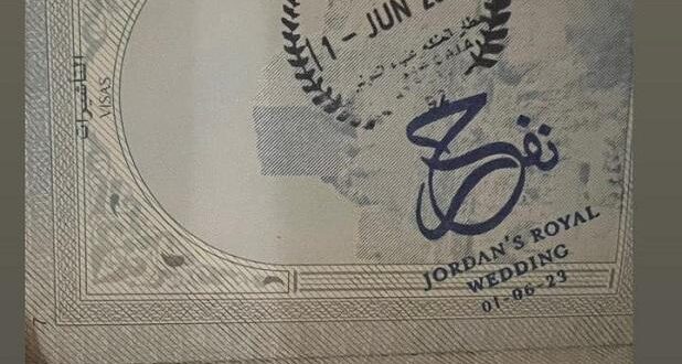 الأول نيوز  – تفاجأ القادمون إلى الأردن منذ منتصف الليلة الماضية باستخدام ختم دخول مخصص للاحتفال بزفاف سمو ولي العهد، الأمير الحسين بن عبد الله الثاني.