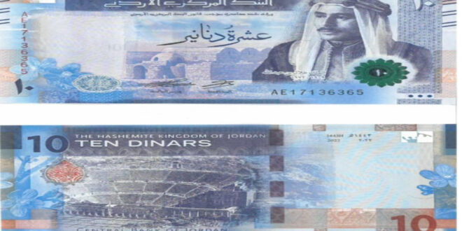 الأول نيوز – أعلن البنك المركزي الأردني عن بدء طرح فئة العشرة دنانير/ الإصدار الخامس في التداول، والتي يزين وجهها صورة جلالة المغفور له الملك طلال بن عبد الله طيب الله ثراه، اعتباراً من اليوم الاربعاء الموافق 26 تموز 2023 جنباً إلى جنب مع فئة العشرة دنانير/ الإصدار الرابع.