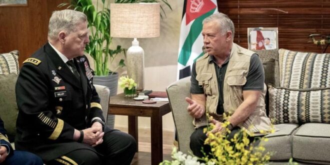 الأول نيوز  – استقبل جلالة الملك عبدالله الثاني، اليوم الأربعاء، رئيس هيئة الأركان المشتركة للجيش الأمريكي الفريق أول مارك ميلي.