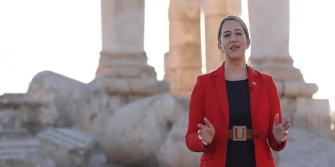 وقالت في مقطع فيديو نشرته السفارة الأميركية في عمّان، إن الولايات المتحدة تقف جنبا إلى جنب مع الأردن وستستمر بدعم الأردن.