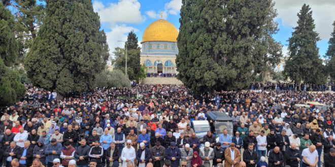 الأول نيوز – أدى 80 ألف مصل، صلاة الجمعة الأولى من شهر رمضان بالمسجد الأقصى المبارك، وفق دائرة الأوقاف الإسلامية في القدس.