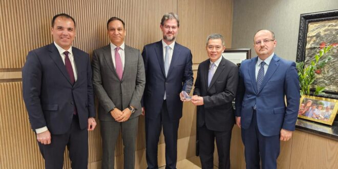 وتسلم الرئيس التنفيذي للبنك الأردني الكويتي هيثم البطيخي الجائزة من مدير مجموعة المؤسسات المالية في بنك جي بي مورغان تشيس، خلال زيارة وفد من البنك الأمريكي للبنك الأردني الكويتي، بحضور إبراهيم بيشه – رئيس الخزينة والمؤسسات المالية.