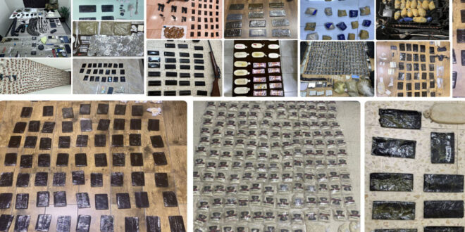 وفي إحدى مناطق البادية الوسطى دهمت كوادر الإدارة تاجرا للمخدرات والأسلحة وأُلقي القبض عليه وضبط داخل منزله 44 كف حشيش و9 أسلحة نارية، وتم أيضا في البادية الجنوبية إلقاء القبض على تاجرَين للمخدرات وضبط بحوزتهما 22 كف حشيش وسلاح ناري.
