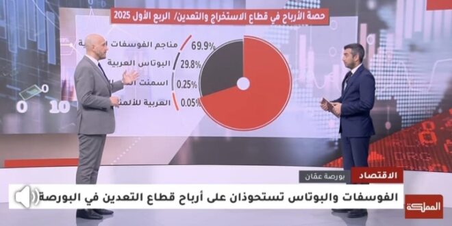 وبحسب تحليل اقتصادي بثّته قناة المملكة، فقد تصدّرت شركتا الفوسفات الأردنية والبوتاس العربية قائمة الشركات الأكثر تحقيقًا للأرباح في القطاع، مستحوذتين على الحصة الأكبر من صافي الأرباح الإجمالية.ويأتي هذا الأداء في وقت تتزايد فيه التوقعات بدور أكبر لقطاع التعدين في دعم الاقتصاد الوطني.