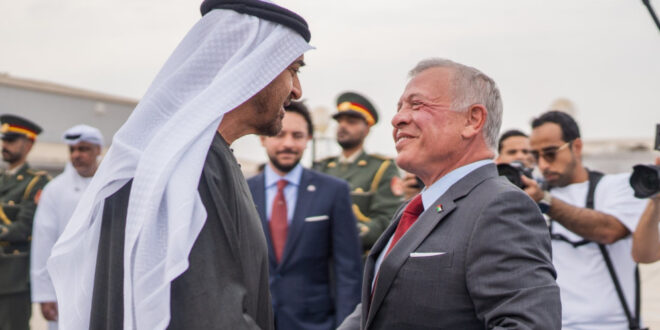 جاء ذلك خلال مباحثات عقدها جلالته مع سمو الشيخ محمد بن زايد آل نهيان، رئيس دولة الإمارات العربية المتحدة بقصر الشاطئ في أبوظبي، لبحث أبرز المستجدات الإقليمية والعلاقات الثنائية، بحضور سمو الأمير الحسين بن عبدﷲ الثاني ولي العهد.