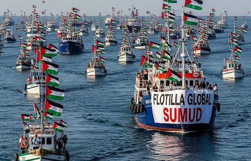 وتابعت: “نحن مُصرون على تحقيق أهداف الأسطول.. كسر الحصار وفتح ممر بحري”. وقالت متحدثة في مؤتمر صحفي باسم هيئة أسطول الصمود المغاربي: “تفصلنا سويعات ربما قبل التدخل الصهيوني لمنع أسطول الصمود العالمي من الوصول إلى غزة”.
