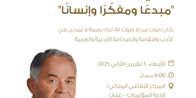 الأول نيوز – يحتفي أصدقاء ومحبو وعائلة الأديب والصحفي والبرلماني والنقابي الراحل فخري قعوار، الذي انتقل إلى رحمة الله تعالى في العام الماضي، بمسيرته وأفكاره وكتاباته في أمسية تستضيف قادة الفكر والثقافة والسياسة، وذلك في تمام الساعة السادسة من مساء يوم الأربعاء القادم 5/11/2025، في القاعة الرئيسية في المركز الثقافي الملكي.