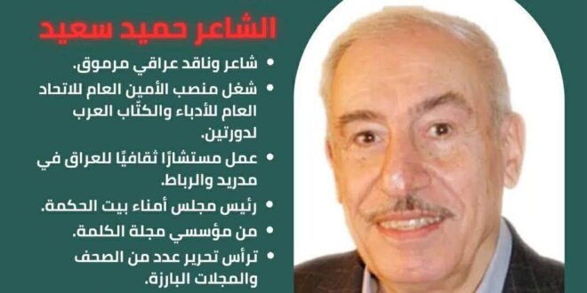 وأضاف أن اللجنة اختارت الشاعر حميد سعيد نظرا لما تتسم به تجربته من تماسك فني واتساع معرفي بالتراثين العربي والإنساني، إلى جانب وعيه العميق بمراحل تطور القصيدة العربية وحداثتها، حيث تصدر قصيدته من نبض الحياة وتوتراتها، حاملة معاناة الإنسان وتطلعاته إلى العدل والجمال.