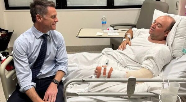ونشر رئيس حكومة ولاية نيو ساوث ويلز، كريس مينز، صورة للأحمد البالغ من العمر 43 عاماً خلال زيارته له في المستشفى، واصفاً إياه بـ”البطل الحقيقي”، مؤكداً أن شجاعته النادرة أنقذت بلا شك أرواحاً لا تُحصى عندما خاطر بحياته وانتزع سلاح أحد المسلحين بيديه العاريتين.