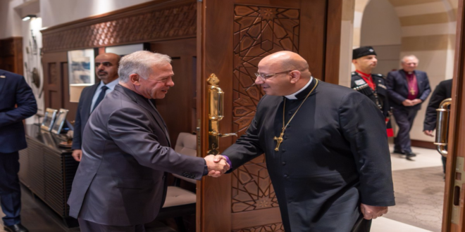 وأكد جلالته، خلال اللقاء الذي عقد في قصر الحسينية بحضور سمو الأمير الحسين بن عبدﷲ الثاني ولي العهد، استمرار الأردن بدعم الوجود المسيحي في القدس، انطلاقا من الوصاية الهاشمية على المقدسات الإسلامية والمسيحية في المدينة المقدسة.