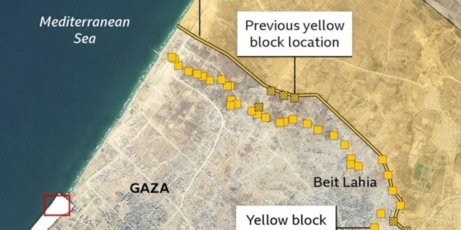ويمثل الخط الأصفر حدوداً للمنطقة التي انسحب منها “الجيش” الإسرائيلي عقب بدء تنفيذ وقف إطلاق النار بين حركة حماس و”إسرائيل” في أكتوبر الماضي، وبموجب هذا الاتفاق الذي جرى التوصل إليه عبر وسطاء بينهم الولايات المتحدة، يُفترض أن تنسحب القوات الإسرائيلية مسافة أبعد، توازياً مع تقدم مراحل الاتفاق.