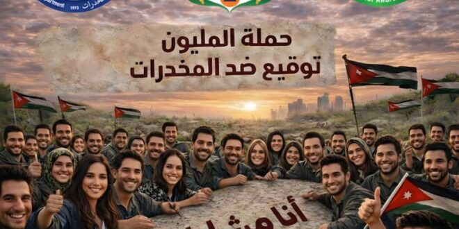 الأول نيوز – تهدف “الحملة الوطنية لمليون توقيع ضد المخدرات” الى تنمية بيئة وطنية رافضة للمخدرات وداعمة للسلم المجتمعي والسلامة الوطنية من مخاطرها وكذلك تعزيز المشاركة المجتمعية وخاصة الشباب للتصدي لهذه الآفة التي باتت هماً وطنيا يهدد طمأنينة المجتمع وتستهدف هذه الحملة مجتمعنا الاردني الكريم بكل اطيافه وقطاعاته.