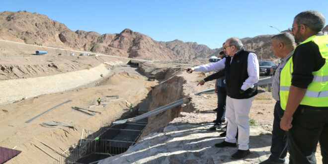وفي منطقة النفق، تابع الوزير أعمال تصريف المياه وإزالة الأتربة التي تسببت سابقاً بإعاقة حركة الشاحنات بعد أن وصل ارتفاع الطمي في بعض المواقع إلى أربعة أمتار، حيث يجري العمل حالياً على إنشاء عبارات لتصريف مياه الأمطار وتنفيذ أعمال حمايات وجدران “جابيون” لضمان عدم تكرار تجمع المياه داخل النفق، وذلك ضمن خطة المعالجة التي تقدر تكلفتها بنحو 1.3 مليون دينار.