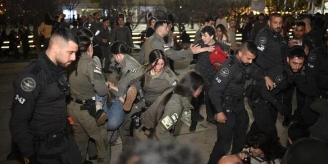 واستخدمت قوات “حرس الحدود” القوة المفرطة لتفريق المحتجين في ساحة “هبيما” بتل أبيب، بذريعة مخالفة تعليمات الجبهة الداخلية التي تحظر تجمهر أكثر من 50 شخصا في الأماكن المفتوحة بسبب الأوضاع الأمنية أيضا.