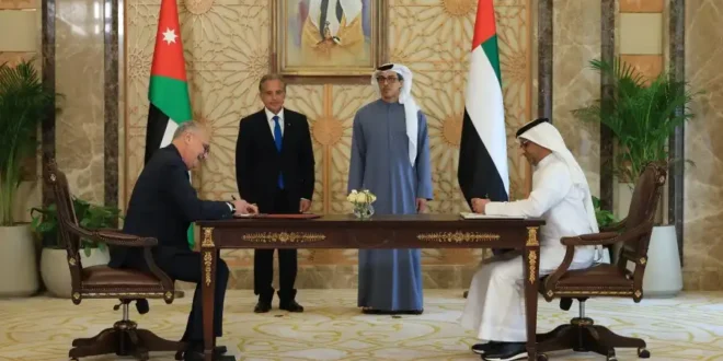 الأول نيوز – شهد رئيس الوزراء الدكتور جعفر حسَّان والشَّيخ منصور بن زايد آل نهيَّان نائب رئيس دولة الإمارات العربيَّة المتَّحدة الشَّقيقة نائب رئيس مجلس الوزراء ورئيس ديوان الرِّئاسة، توقيع الاتفاقيَّات لبدء الإجراءات الفعليَّة لتنفيذ مشروع سكَّة حديد ميناء العقبة، وتأسيس شركة أردنيَّة – إماراتيَّة مشتركة تقوم بمهام تشييد وتشغيل مشروع سكَّة حديد ميناء العقبة.