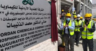 الاول نيوز – افتتح رئيس مجلس ادارة شركة مناجم الفوسفات الأردنية الدكتور محمد الذنيبات، اليوم الثلاثاء، في منطقة الشيدية بمحافظة معان، مشروع توسعة مصانع الشركة الهندية الأردنية للكيماويات والمملوكة بالكامل لشركة مناجم الفوسفات الأردنية. وتضم التوسعة الجديدة، التي بلغت كلفتها نحو 6 ملايين دولار، انشاء الفلتر الثالث لوحدة حامض الفوسفوريك(P2O5)، …